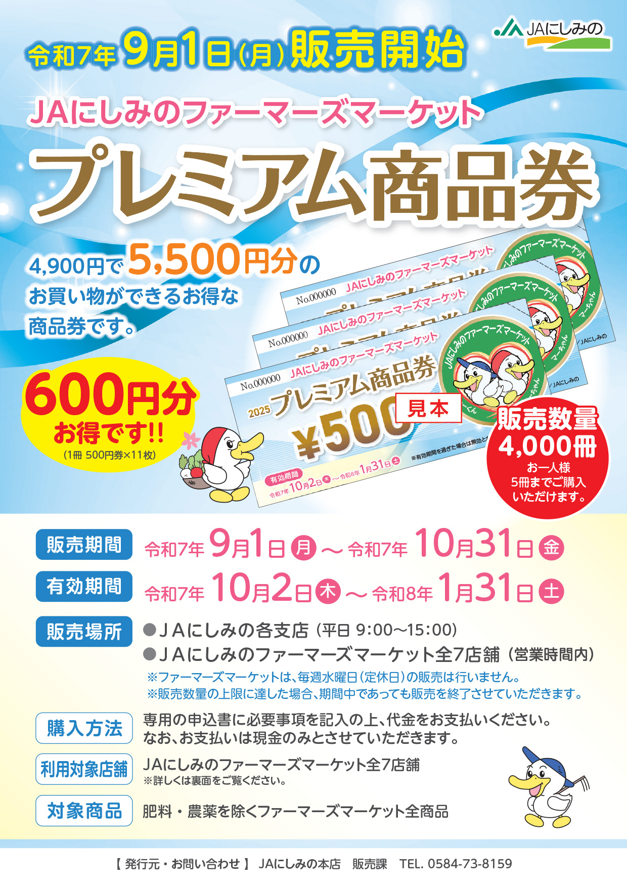 販売場所:JAにしみの各支店窓口(平日9:00~15:00)